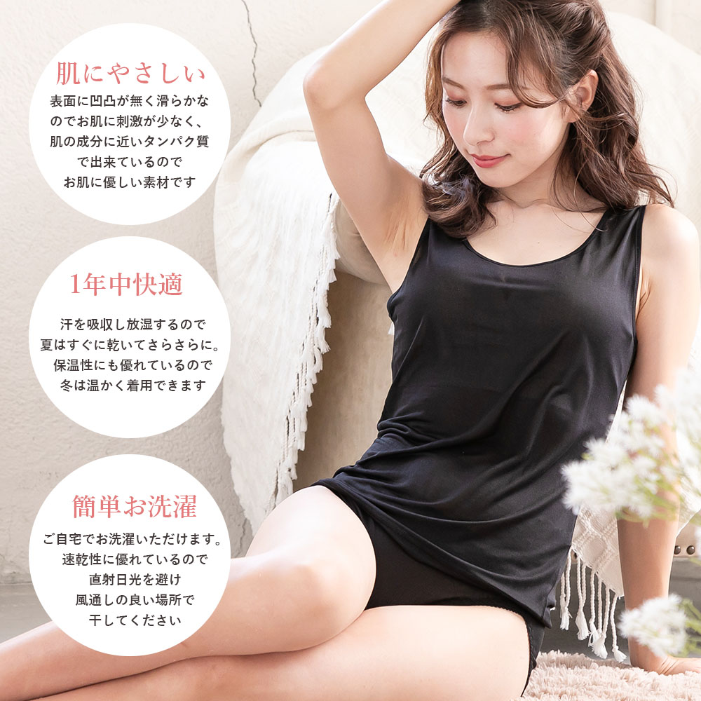 インナー レディース シルク100% タンクトップ 冷えとり 冷え症 敏感肌 冷え症 敏感肌 レディース 肌着 白 黒 速乾 シルク おしゃれ 下着 汗取りインナー