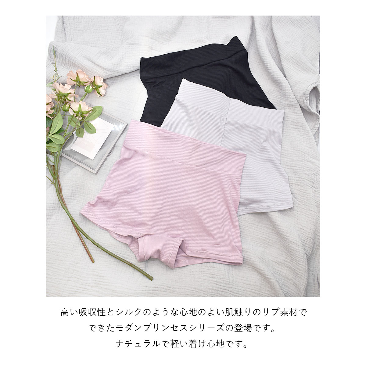 高い吸収性とシルクのような心地のよい肌触りのリブ素材でできたモダンプリンセスシリーズの登場です。軽い着け心地が癖になります。