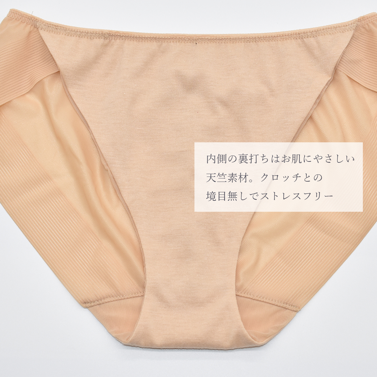 気になるショーツラインが出にくいヘムショーツなので、しっかりとお尻を包み込んでボトムスに響きにくくしてくれます。