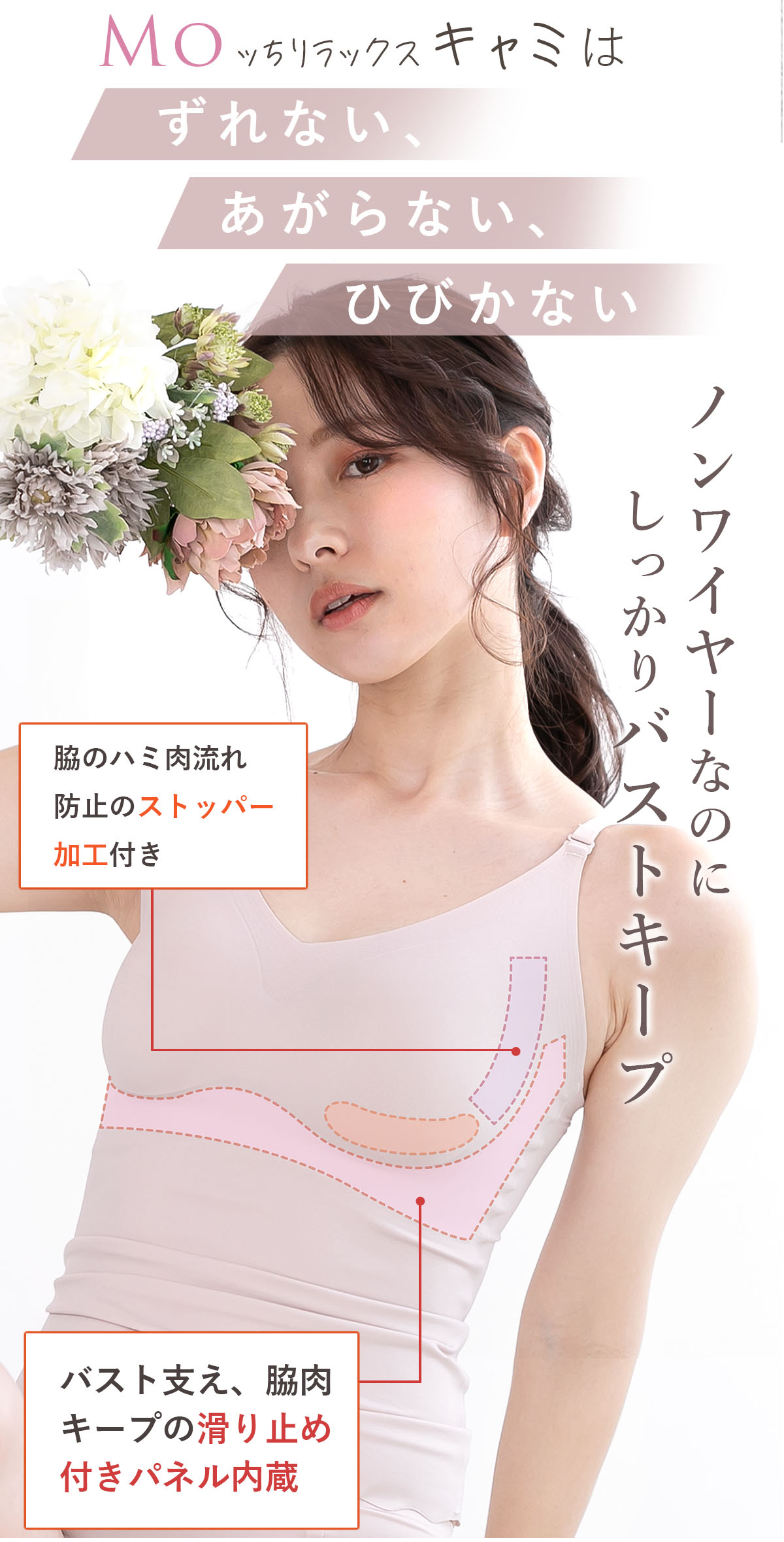 カップ付きキャミソール 締め付けない ブラトップ ブラキャミ インナー 快適 しっかりホールド もっちリラックス 大きいサイズ M L LLサイズ
