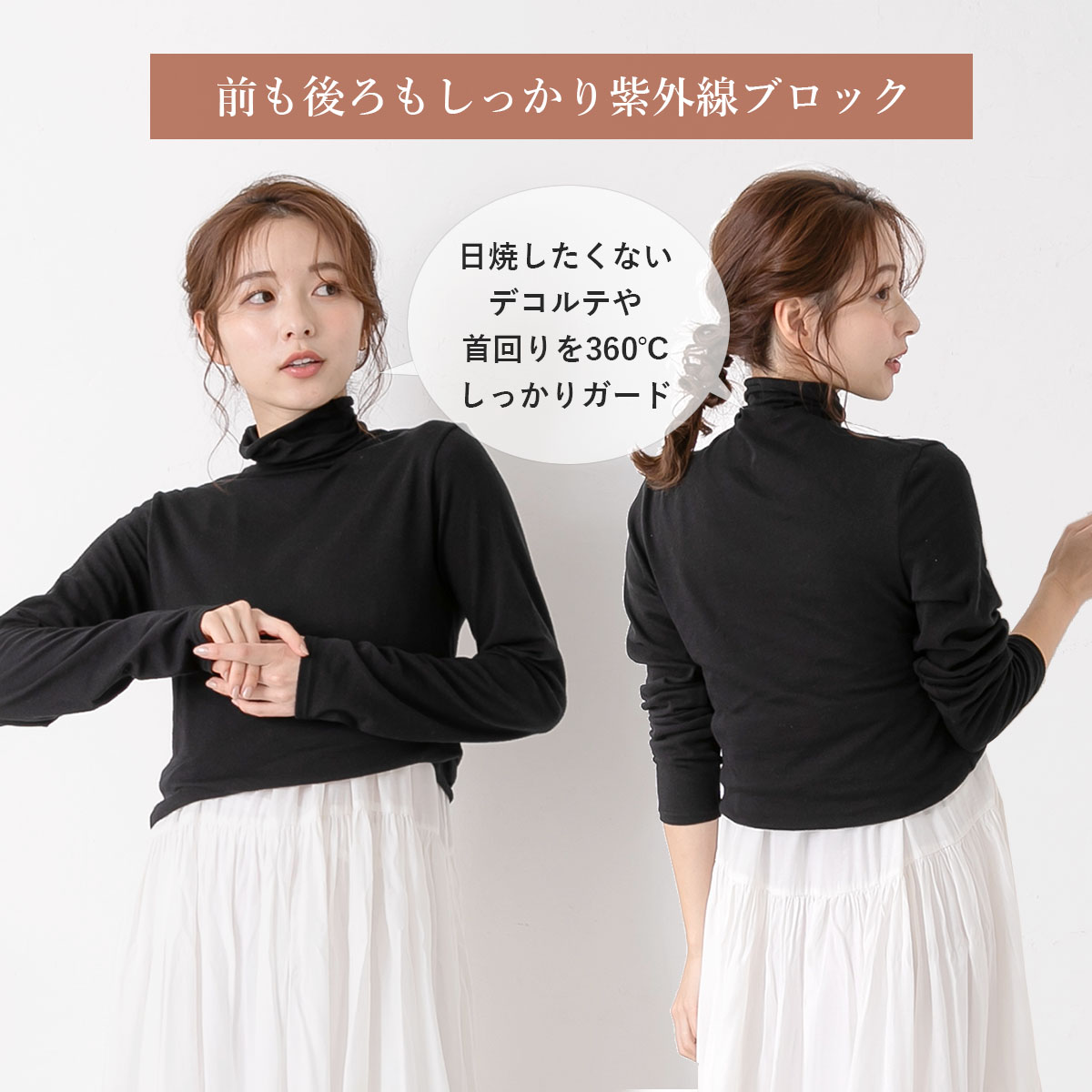 インナー レディース 長袖 コットン ガーゼ ベア天 UVカット ボトルネックインナー 重ね着 綿