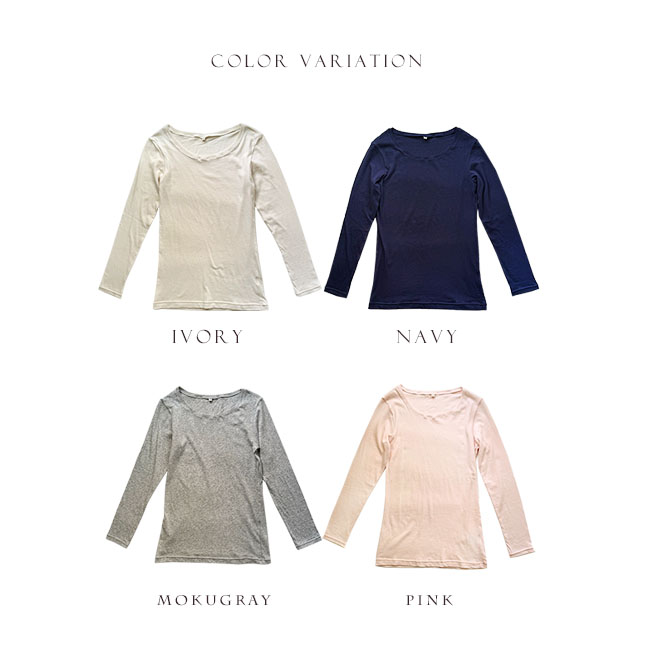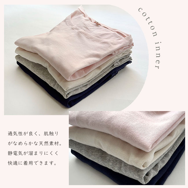 インナー レディース コットンガーゼ ベア天 綿 長袖 Tシャツ コットン素材 長袖 インナー 吸水性 通気性 天然素材 敏感肌 あったか 保温