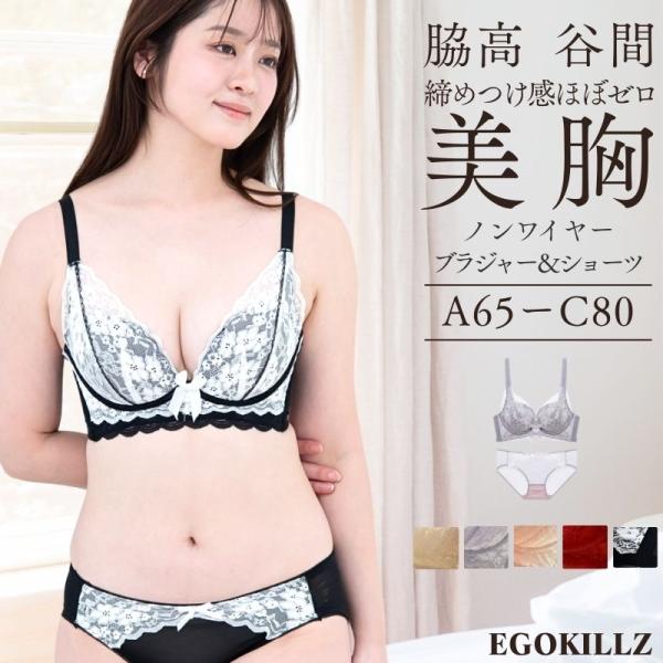 ブラジャー ショーツ セット 補正 谷間 ノンワイヤーブラ 美胸 美背 脇高 レース 盛り ブラショーツ ランジェリー インナー 美盛 下着 30代 40代 50代 Egokillz