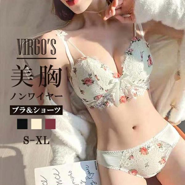 ブラジャー ショーツ セット 補正 谷間 ノンワイヤーブラ 美胸 美背 脇高 レース 盛り ブラショーツ ランジェリー インナー 美盛 下着 30代 40代 50代 Egokillz