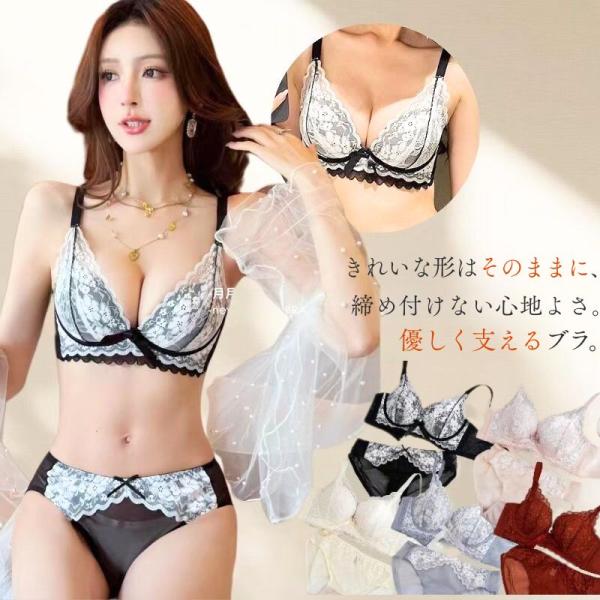 ブラショーツセット 補正 谷間 ノンワイヤー 美胸 美背 脇高 総レース 盛り ブラジャーショーツ ランジェリー インナー 美盛 下着 締め付け感ゼロ S-XL Egokillz