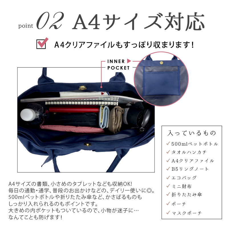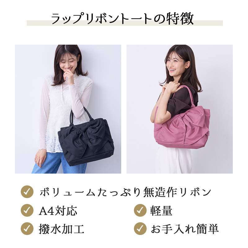 トートバッグ レディース 大きめ A4対応 軽量 通学 通勤 撥水 バッグ リボン ラップリボン 収納力