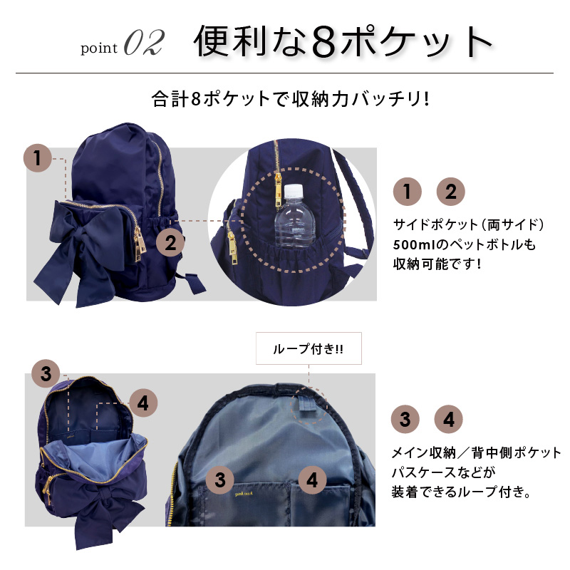 リュック レディース バッグ 大きめ 軽量 A4 撥水 リボン バッグパック マザーズバッグ 旅行 大容量 背面 収納力