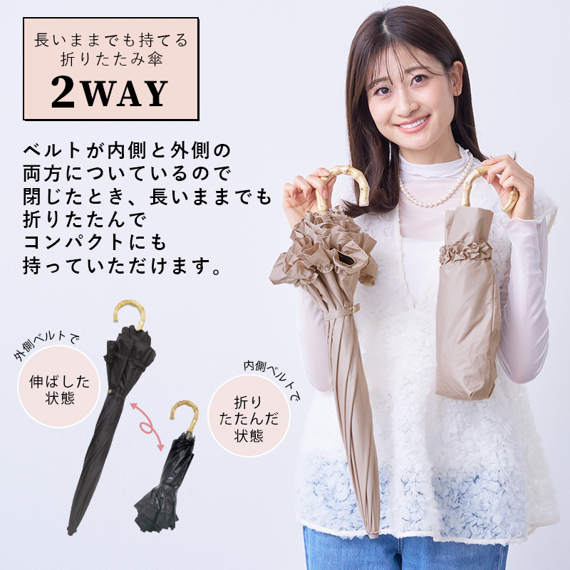 【予約】日傘 完全遮光 長傘 晴雨兼用 8本骨レディース フリル バンブー