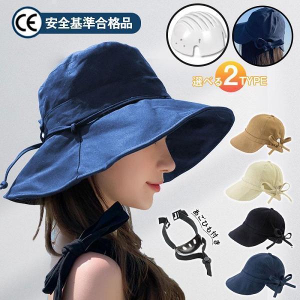 自転車ヘルメット 母の日 UVカット帽 バケットハット型ヘルメット リボン あごひも付き おしゃれ サイズ調整可