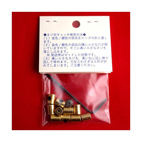 ピンバッジ の 留め具 しっかり留まるネジ式 キャッチ 10個で1セット金色+1個銀色おまけ ピンズ ピンバッチ 受け