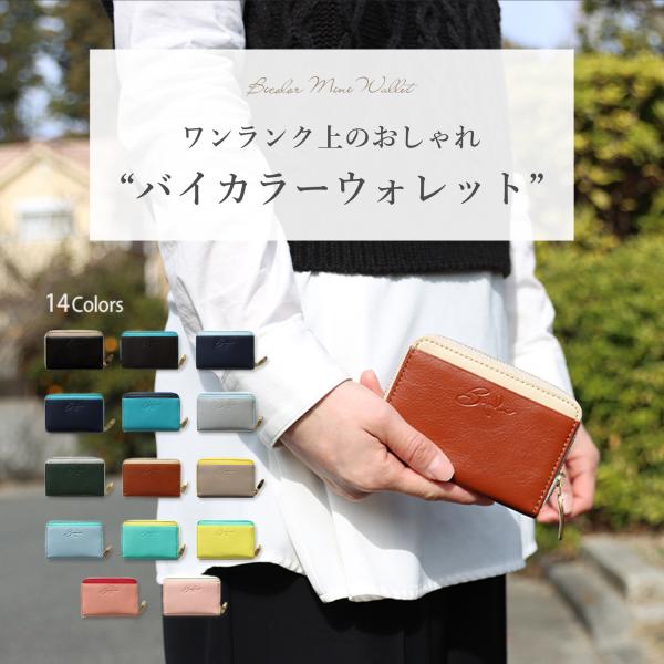 流行りのバイカラーデザインの、おしゃれなミニ財布、コインケースとしても使い勝手抜群!