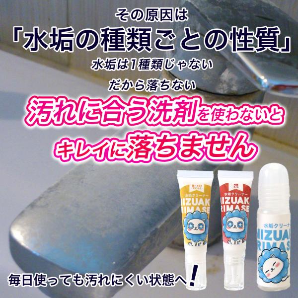 本商品は水垢の種類に合わせて使い分けできる3種類セットの水垢クリーナーです。