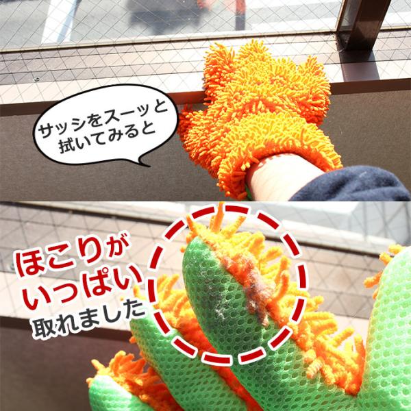 マイクロファイバー素材の手袋の片面は、モップみたいなもこもこで優しくお掃除。