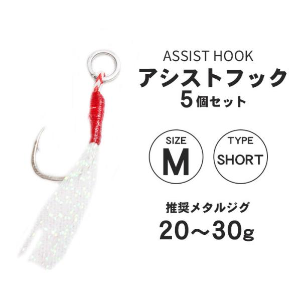 リア用 アシストフック ショートタイプ Mサイズ 5本セット メタルジグ用 ジギング ショア 防錆 高強度 太軸 自作 リアフック ショートアシスト ショートタイプ