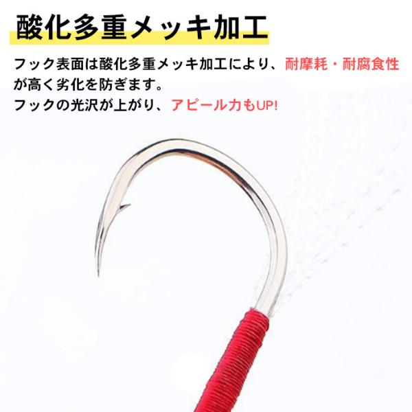 ジギング 太軸 高強度 防錆 自作 リアフック 釣行用 リア用 ショートアシスト Mサイズフック 太軸フック 高強度フック 防錆アシスト ティンセル付き 自作対応 ジグ用リアフック フロントリア併用 中型青物対応 シーバス対応 根魚対応 タチウオ対応 スプリットリング付 自作ジグ向け カスタム対応針 メタルジグ装着 リアパーツ ジグ後方装着 中型ジグ対応 釣行予備フック DIY派向け釣具