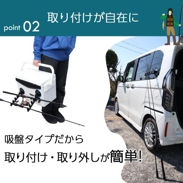 吸盤式ロッドホルダー 2個セット 車載 車内収納 クーラーボックス対応 強力吸着 滑り止め 簡単取付 ロッドキャリー 釣り竿ホルダー フィッシング爆買