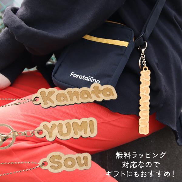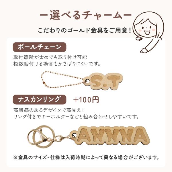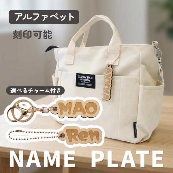 軽くてかわいい英字名入れ木製ボールチェーンタグで持ち物管理