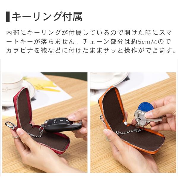 ニュアンスカラー プレゼント包装対応 ラウンドファスナー付き バッグ装着可能 鍵の紛失防止 可愛いくすみカラー 軽量設計 小さめサイズ PUレザー仕様 スマートキー収納 レディースギフト 女性向けデザイン 落下防止チェーン 手ぶらで持ち運び ギフトラッピング対応 プレゼント