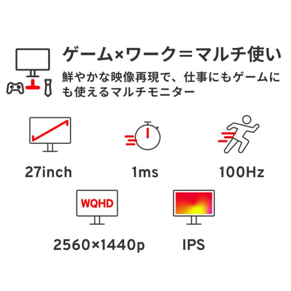 [画面] 27インチ / IPSパネル / 100Hz / 1ms(MPRT) / WQHD(2560×1440) / sRGB 118.72% / 非光沢