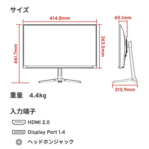 [端子] HDMI2.0 ×1 / DP1.4 ×1 / USB ×1 / ヘッドホンジャック