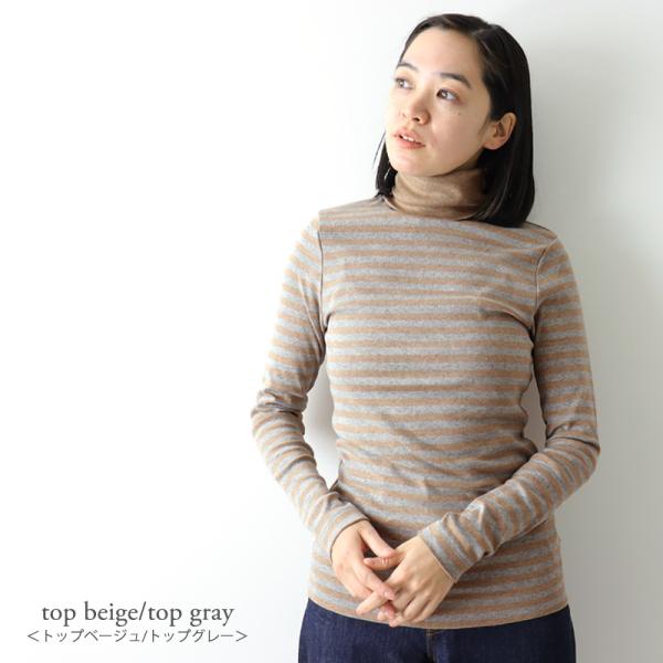 タートルネック ボーダー レディース インナー 綿 コットン 長袖 秋 冬 harmonie Organic Cotton アルモニ オーガニックコットン 配色 タートル 82210061 日本製