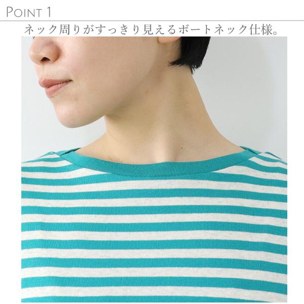 tシャツ カットソー ボーダー レディース 綿 秋 harmonie Organic Cotton アルモニ オーガニックコットン ボートネック ボーダー 8分袖 82340241 日本製
