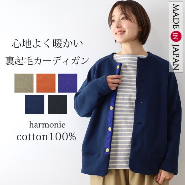 トップス アウター カーディガン 裏起毛 裏毛 ラグラン フロントポケット ポケット付き 綿100% 綿 秋 冬 harmonie アルモニ 日本製 62520145