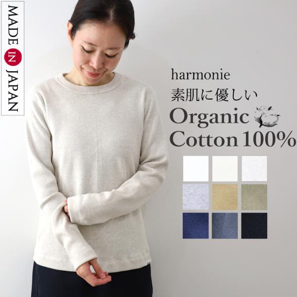 トップス Tシャツ カットソー 長袖 ロンt レディース ロングtシャツ 綿 harmonie アルモニ オーガニックコットン ロングスリーブ 82310015 日本製