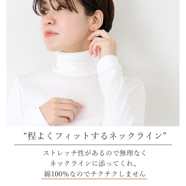 タートルネック ハイネック インナー カットソー レディース 長袖 綿100 オーガニックコットン コットン100 日本製 無地 白 黒 ストレッチ 敏感肌 チクチクしない 天然素材 フィット かわいい おしゃれ 冬 洗える シンプル 重ね着 レイヤード ロンT 長袖Tシャツ 秋冬 暖かい 首元 ぷらーじゅ harmonie ハーモニー あるもに アルモニ