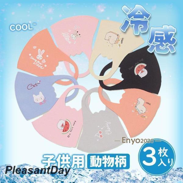 マスク 冷感 夏用 洗える 伸縮マスク 総柄 動物柄 キャラクター 子供用 3枚セット 繰り返し 立体マスク 接触冷感 冷たい UVカット キッズ