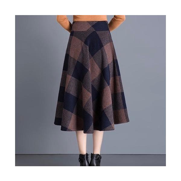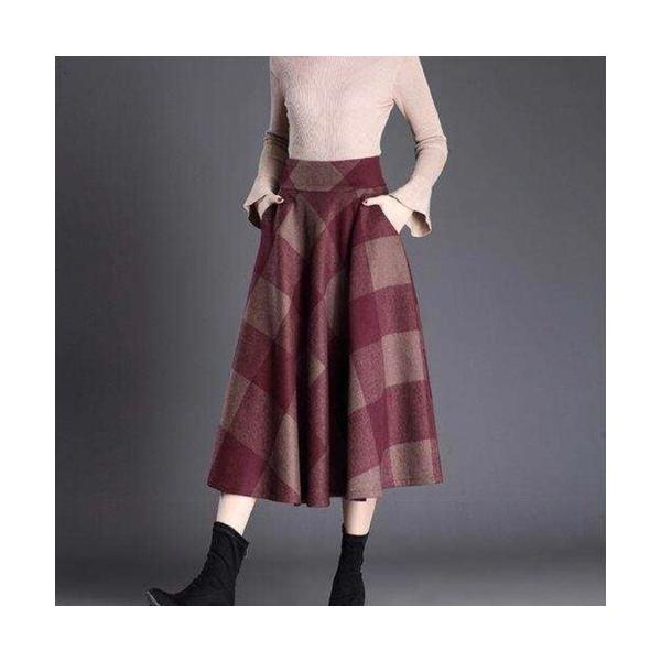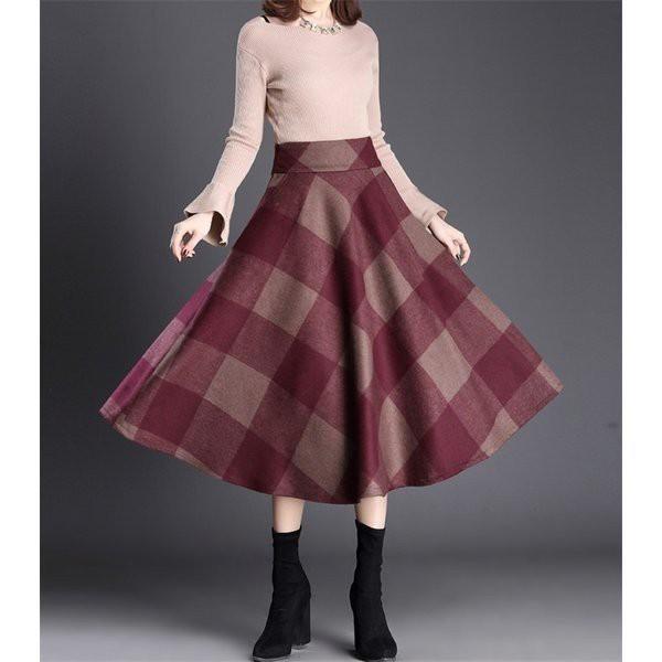 スカート ロング ひざ丈 膝丈 フレアスカート 秋冬 チェック柄 レディース