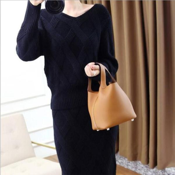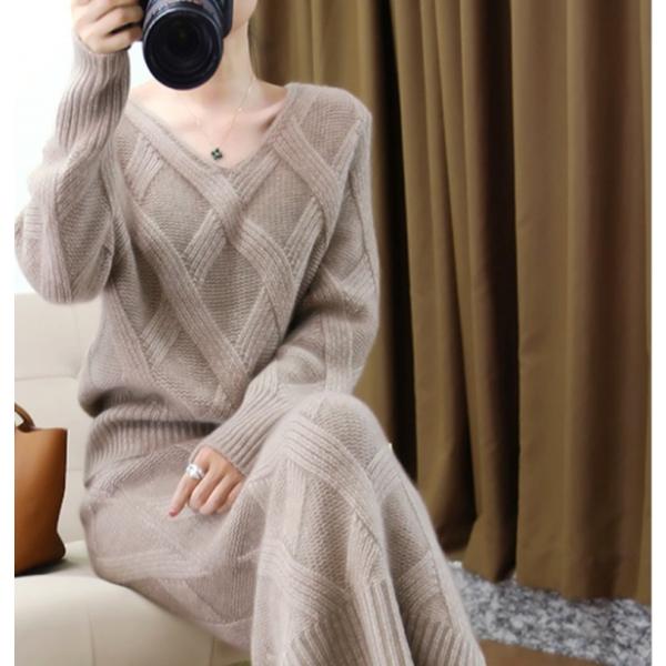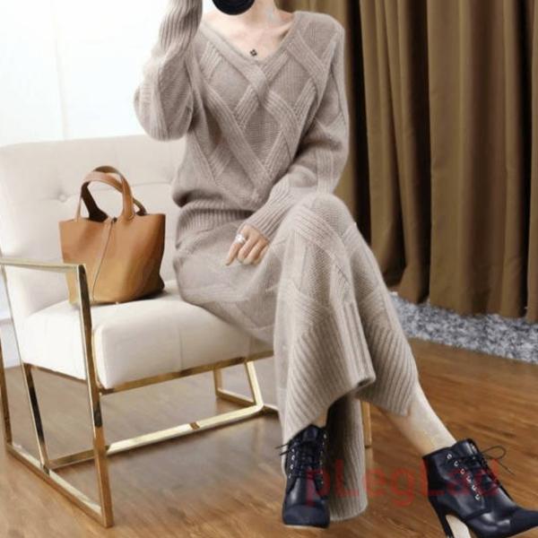 ニットセットアップ セーター レディース トップス スカート Vネック ロング スリット 長袖 タイト きれいめ 秋冬