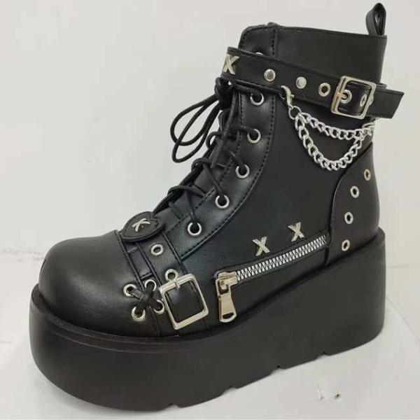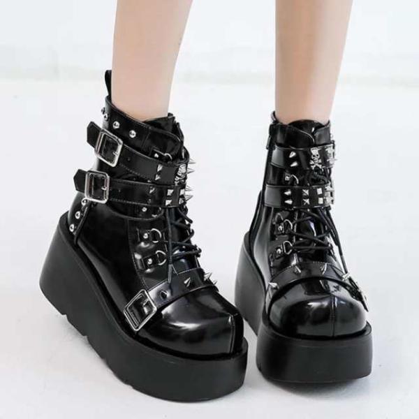 ショートブーツ レディース 厚底 パンク ゴシック ロリータ ブーツ ラウンドトゥ バックル ストラップ 革靴 プラットフォーム シューズ スタッズ