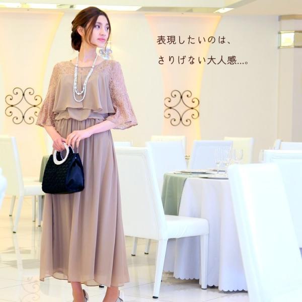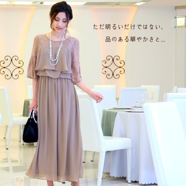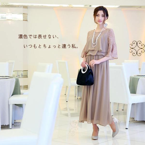 パーティードレス 結婚式 二次会 服装 親族 披露宴 卒業パーティー 大きいサイズ シフォン 30代 40代 50代 おしゃれ プリカ 3-5103-1 ベージュ