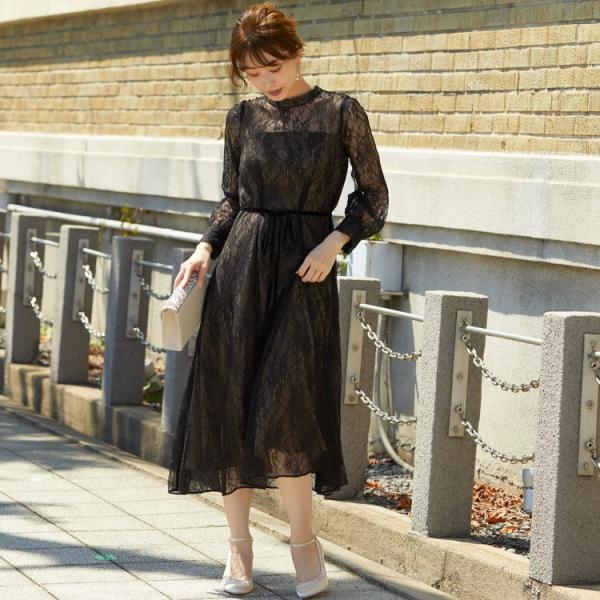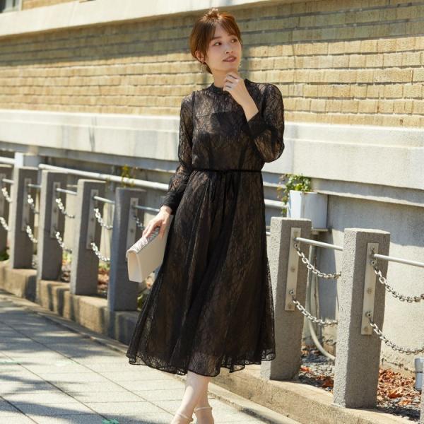 パーティードレス 結婚式 二次会 服装 親族 披露宴 卒業パーティー ゲストドレス レース 袖あり 20代 30代 40代 おしゃれ プリカ 3-5115-1 ブラック