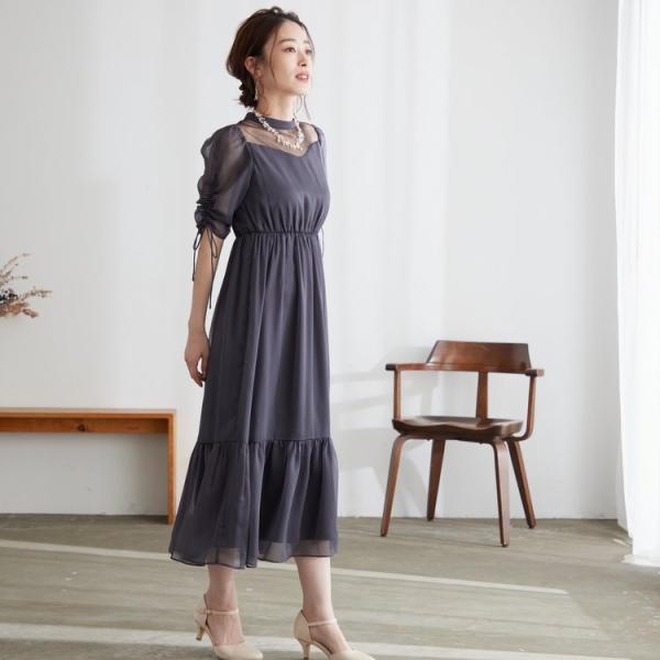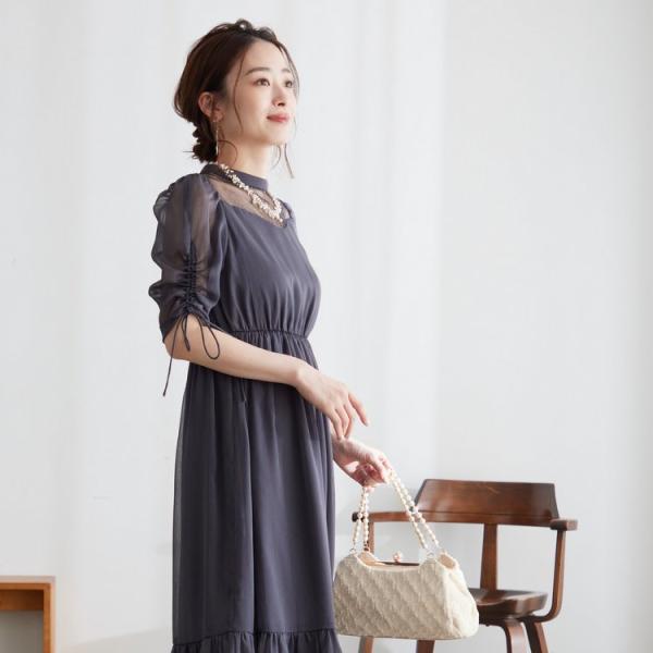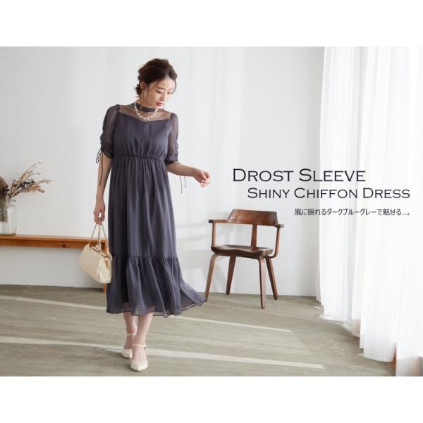 商品名:ドロストスリーブシャイニーシフォンドレス