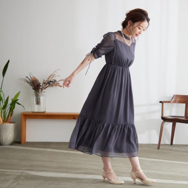 パーティードレス 結婚式 二次会 服装 親族 披露宴 卒業パーティー レース シフォンドレス 20代 30代 40代 おしゃれ プリカ 3-5130-2 グレー