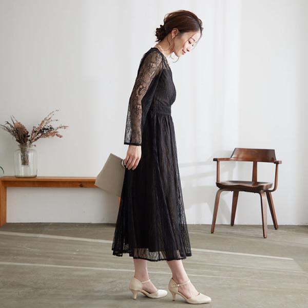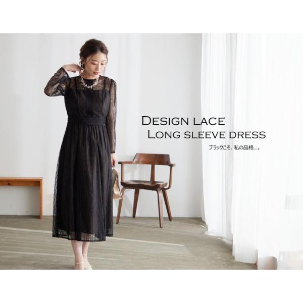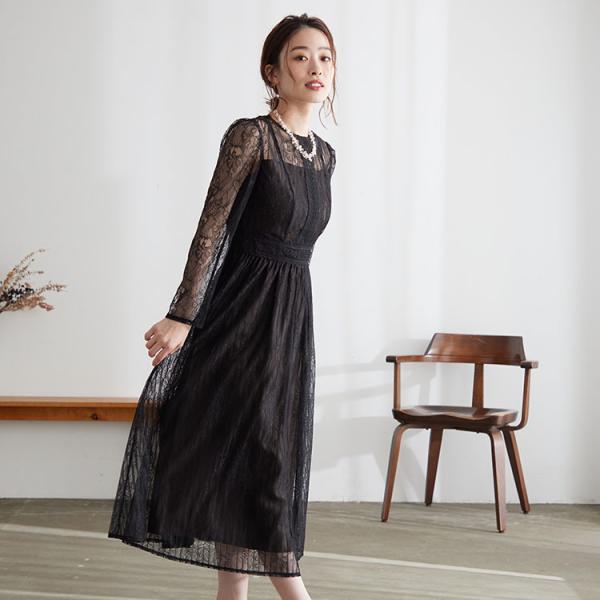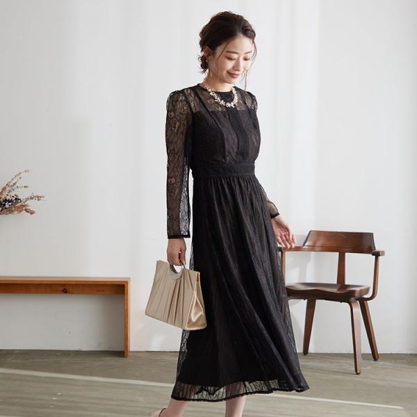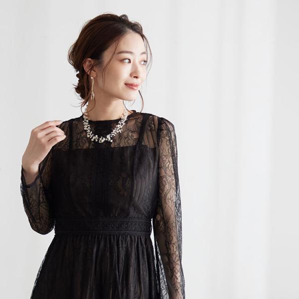 パーティードレス 結婚式 二次会 服装 親族 披露宴 謝恩会 総レース ロングドレス 袖あり 20代 30代 40代 おしゃれ プリカ 3-5132-2 ブラック