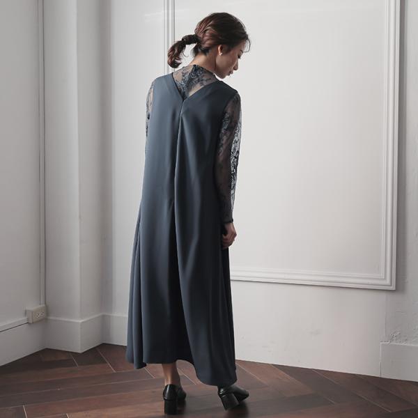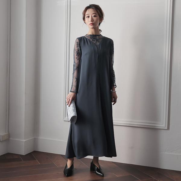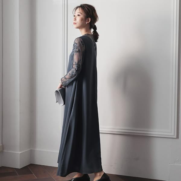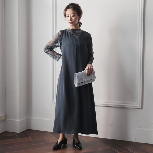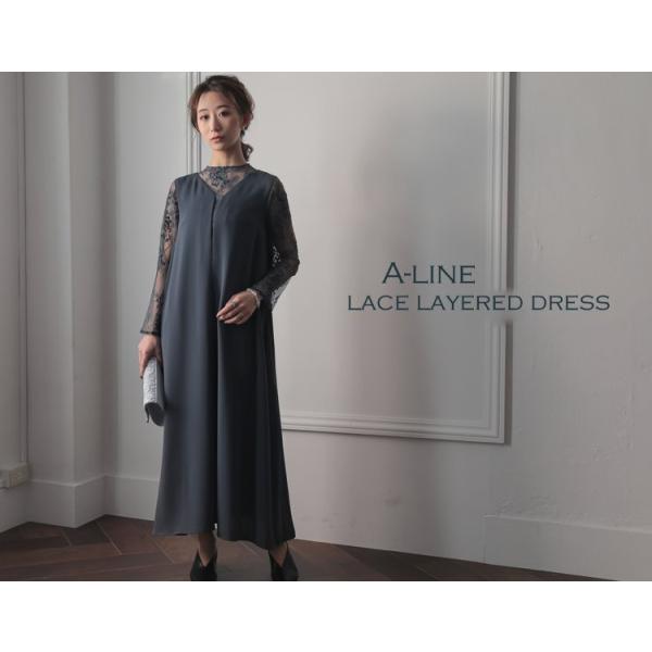 Aラインレースレイヤードドレス(ダークブルーグレー)|パーティードレスのプリカ