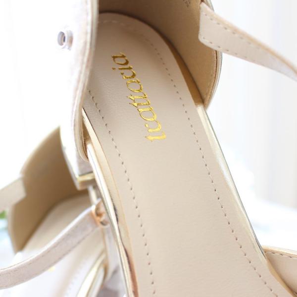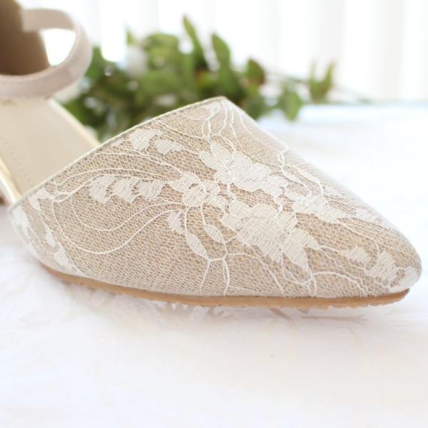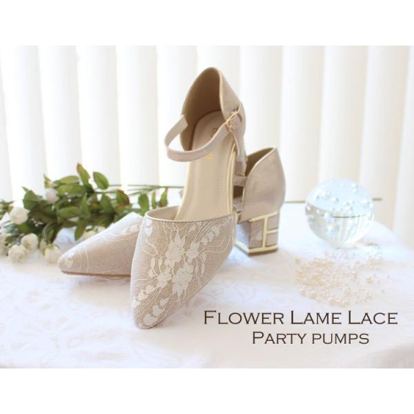 フラワーラメレースのパーティーパンプス(ベージュ)|プリカ