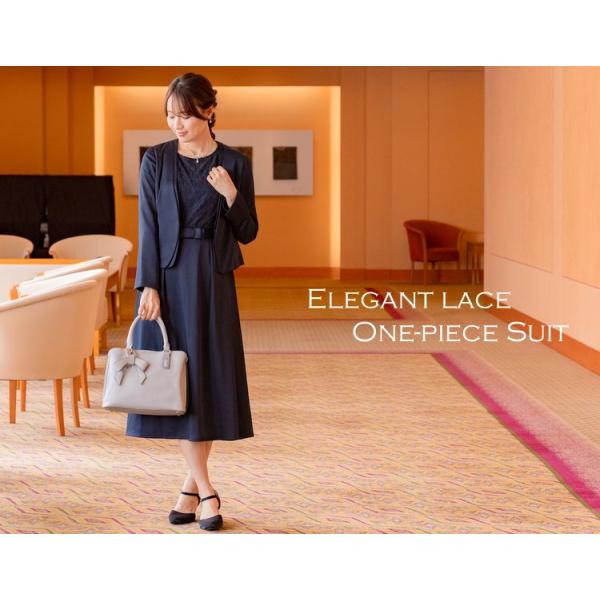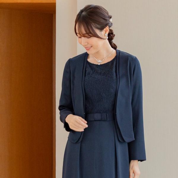 【セレモニースーツ・フォーマルスーツ】上品レースのワンピーススーツ(ダークネイビー)|プリカ