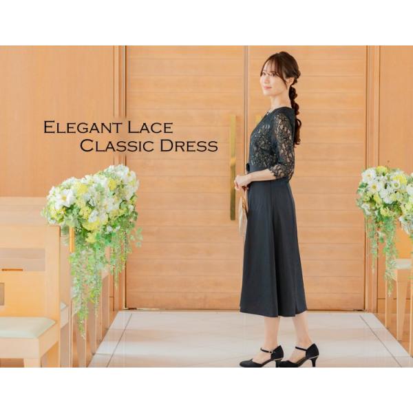 上品なレーストップスと安心の膝下丈が人気のクラシカルドレス(ブラック)|プリカ