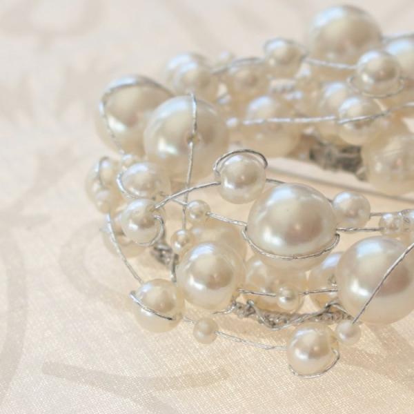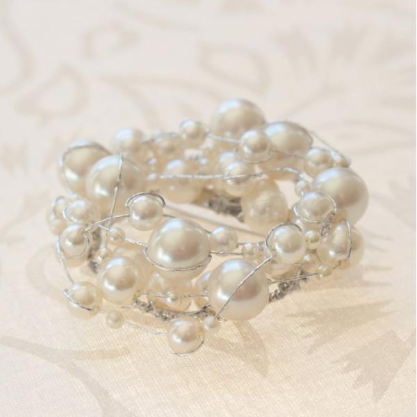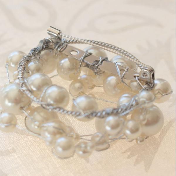 大小無数のパールをラウンド状にまとめた華やかなブローチ。