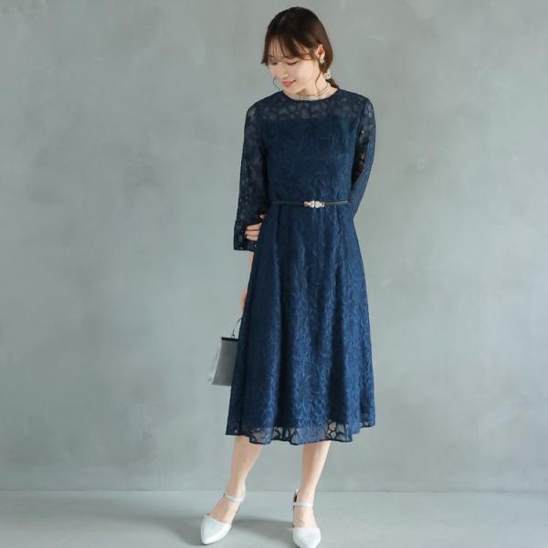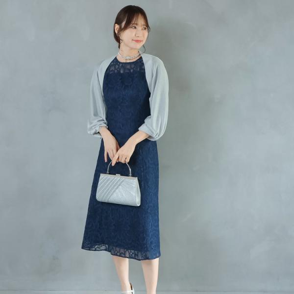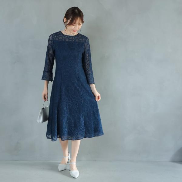 パーティードレス 結婚式 二次会 服装 親族 披露宴 大きいサイズ レースドレス 上品 30代 40代 50代 おしゃれワンピース 5-9100op ネイビー