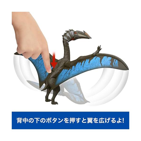 ・内容映画『ジュラシック・ワールド/復活の大地』に登場する、最大の翼竜、ケツァルコアトルスのフィギュアが登場!背中のボタンを押すと、羽が左右に広がり別のボタンを押すとほえて激しくかみつくダイナミックなバトルアクション。リアルな見た目とサウンドでかっこいいシーンを再現できます。フィギュアと連動する無料アプリジュラシック・ワールド・プレイに対応しています。