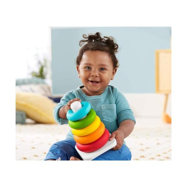 ・内容ゆらりんタワーはフィッシャープライスのロングセラー商品。1960年に初登場以来、赤ちゃんのおもちゃの代表と言える人気を誇っています。90%が植物などの再生可能な資源を使用した、地球環境にやさしいおもちゃです。大きさと色の異なる5つのリングをタワーに重ねてはめたり、揺らしたり。指先の発達を促し、大きさと順番を学びます。中が空洞のリングとタワーは、やわらかで軽く、赤ちゃんが持ちやすく設計されています。