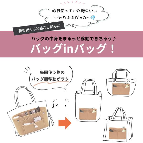 バッグインバッグ 小さめ 軽い 軽量 薄型 インナーバッグ かわいい 整理 水筒 ポケット 仕切り バック バッグ sサイズ スマホ トートバッグ用 フェルト