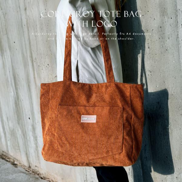 秋冬コーデに映えるコーデュロイ バッグで、柔らかい布素材を使用した布バッグ。