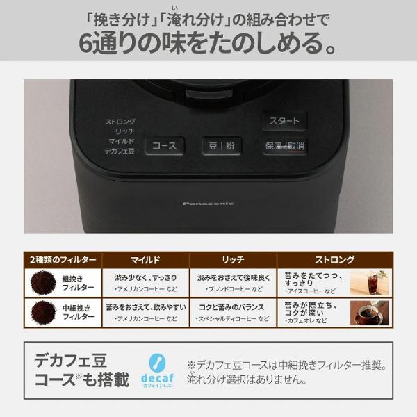 【パナソニック 正規取扱店】コーヒーメーカー 全自動 苦味 コク デカフェ コンパクトボディ 全自動ミル 自動洗浄 中細 粗挽き 手軽 NC-A58-K