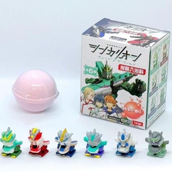バスボール(ももの香り)が溶けると中からデフォルメされたシンカリオンのマスコットが出てくる商品です。